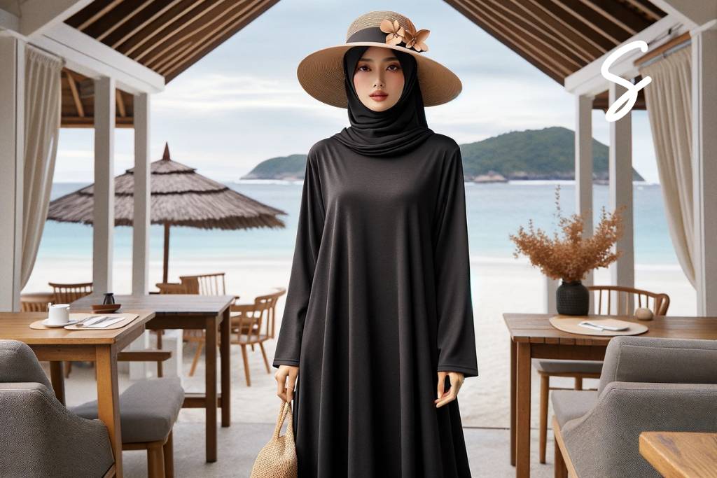 Terakhir, untuk outfit hijab liburan ke Bali yang elegan dan anggun, pilihlah gamis warna hitam yang selalu timeless.