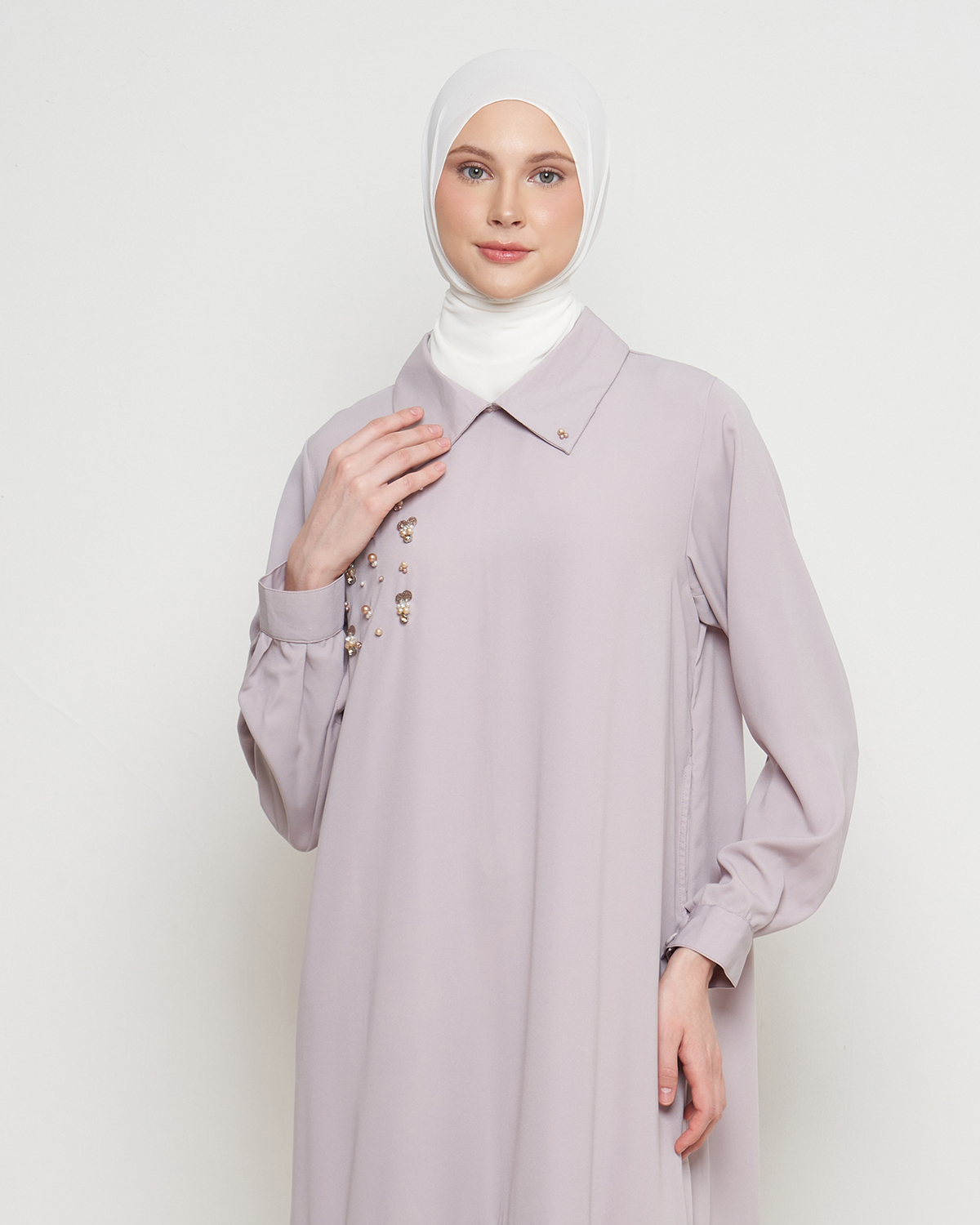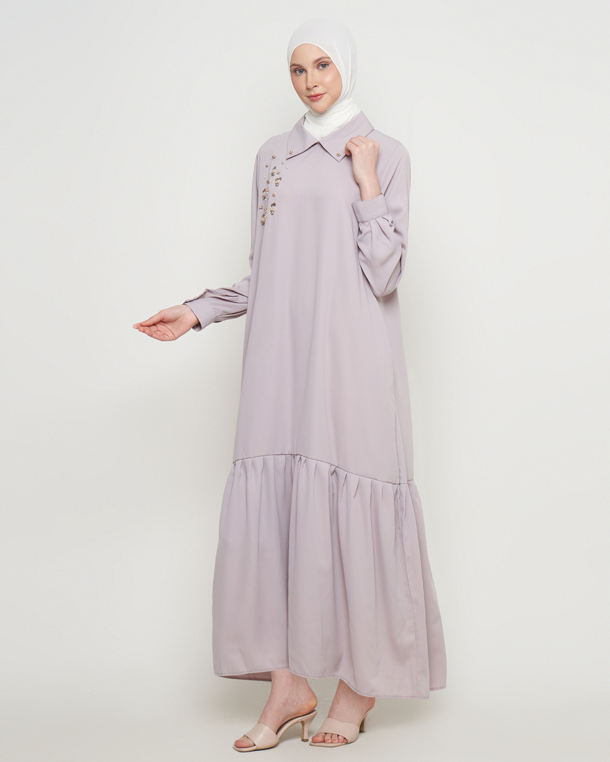 Gamis Wanita Mewah Warna Thistle dengan Payet Shenada